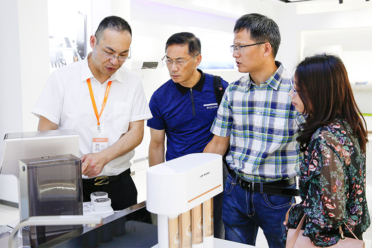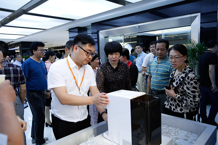 交流會(huì)上,董事長(zhǎng)俞鋒講述其科恩電器十余年的發(fā)展征程, 磨礪出尖峰,科恩快速被市場(chǎng)廣泛接納、被消費(fèi)者所認(rèn)可,良好的品牌形象和知名度、獨(dú)特的產(chǎn)品品質(zhì)、合理的價(jià)格和服務(wù)讓科恩電器漸漸走向高端。隨后,俞董事長(zhǎng)重點(diǎn)介紹并演示了科恩為響應(yīng)“綠色家電”消費(fèi),重點(diǎn)研發(fā)的環(huán)?!昂诳萍肌薄?strong>科恩移動(dòng)水吧。健康飲水倡導(dǎo)者,全品類廚電質(zhì)造專家科恩電器憑借移動(dòng)水吧榮獲“工業(yè)設(shè)計(jì)大賽產(chǎn)品設(shè)計(jì)優(yōu)秀獎(jiǎng)”,這一殊榮充分展現(xiàn)了科恩電器的工業(yè)設(shè)計(jì)實(shí)力,也是行業(yè)對(duì)科恩電器在工業(yè)設(shè)計(jì)領(lǐng)域成績(jī)的充分認(rèn)可。