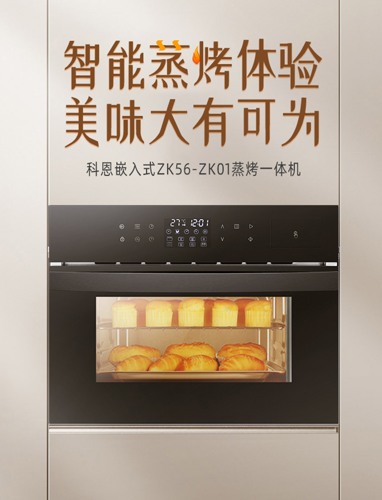 食材蒸不熟、燒烤不入味?那是因為沒選好蒸烤一體機,蒸烤一體機哪個品牌好,認準集成灶十大品牌、廚電行業(yè)十大品牌科恩ZK01蒸烤一體機,輕松解鎖簡單烹飪方式。