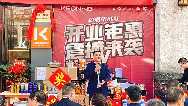 開業(yè)現(xiàn)場,科恩集成灶銷售總監(jiān)錢總、總經(jīng)辦陳總、華南大區(qū)、區(qū)域經(jīng)理一同到場參與活動。