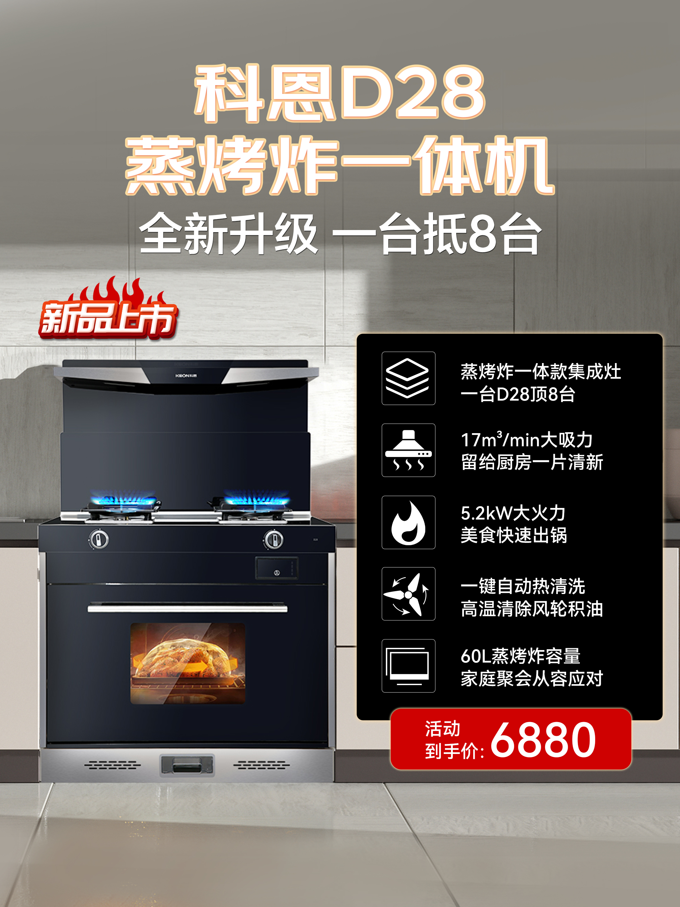 D28蒸烤炸集成灶超級(jí)秒殺:下單即贈(zèng)康巴赫套鍋;咨詢客服送無菌菜板!