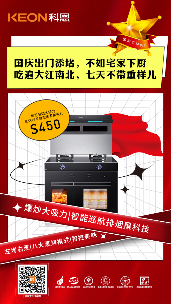 明天就是國慶七天小長假了,你是計劃著去浪跡天涯,跨過山川大河,人山人海,讓身心徜徉在祖國大好河山中,還是選擇宅家享受難得的愜意時光?與其出門感受人從眾的擁堵,不如呼朋喚友宅家為祖國慶生,讓科恩集成智慧廚房,來解決你的“聚會綜合癥”,讓你的國慶假期秒殺一眾越過千山萬水去看人山人海的小伙伴們!