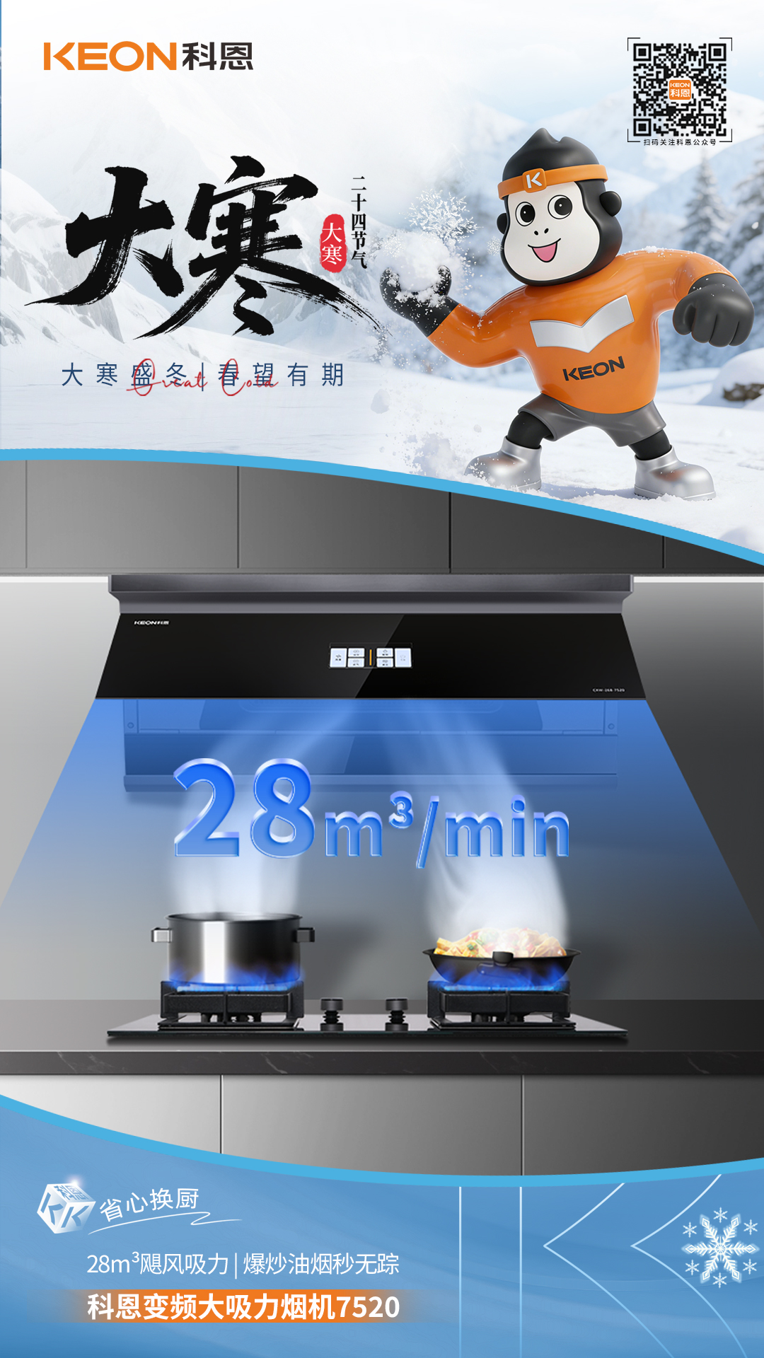 大寒暖廚無煙擾,科恩煙機7520解鎖烹飪新境