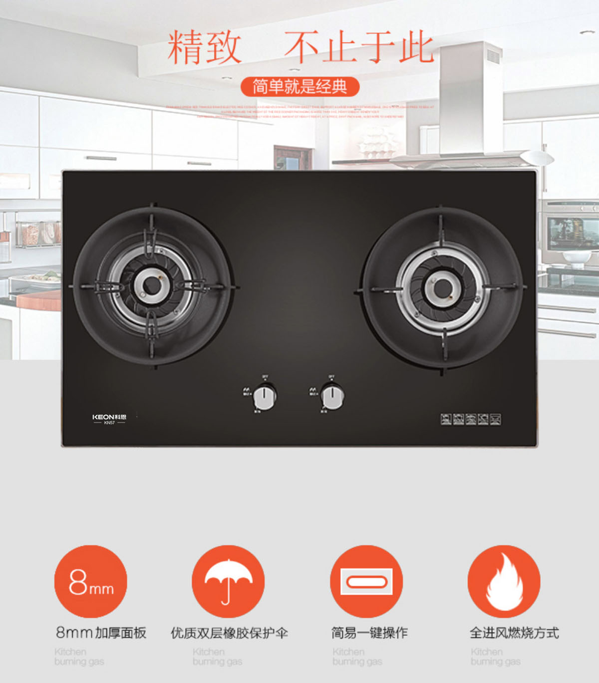 - 特制小火蓋,火藍(lán)有力,熱效率達(dá)65%-67%,高于一級能效標(biāo)準(zhǔn)。