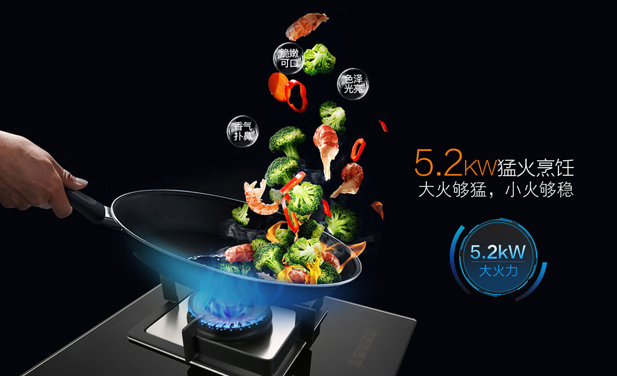 5.2KW大火力,精控勁火,火焰平穩,受熱均勻,節能猛火兩不誤