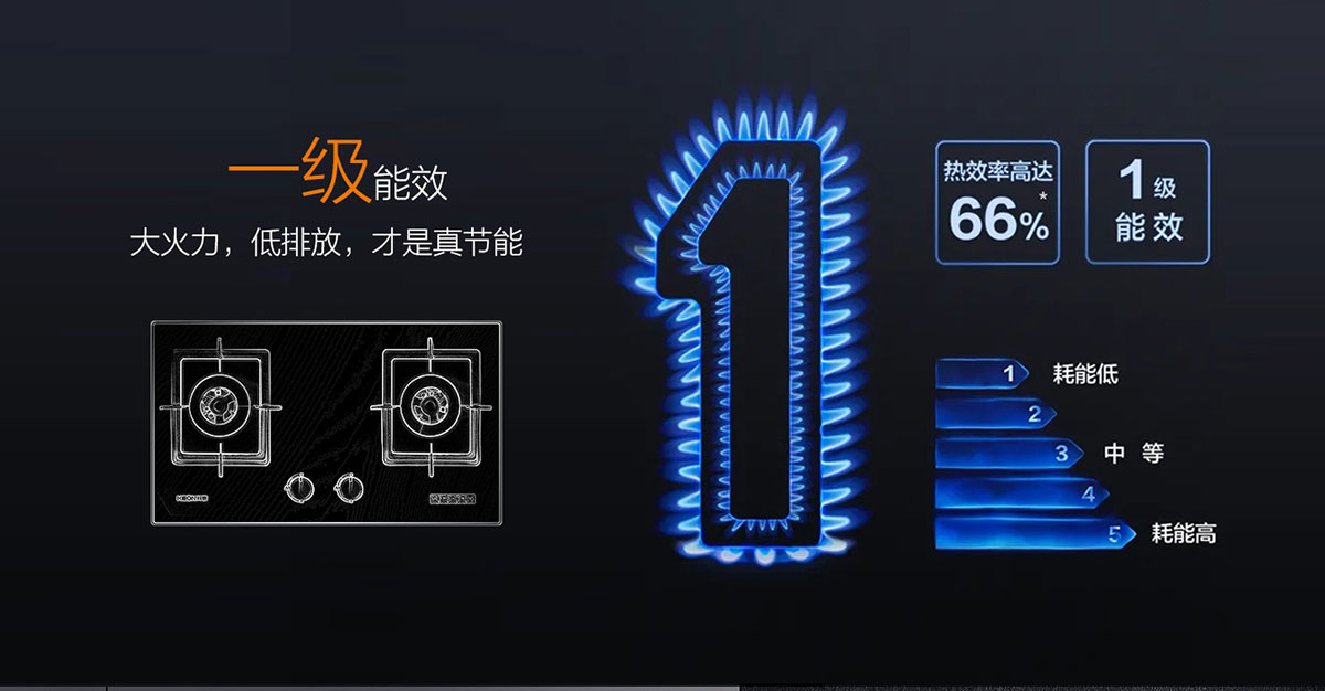 猛焰更節能,66%的熱效率,燃燒更充分,一級能效更省氣