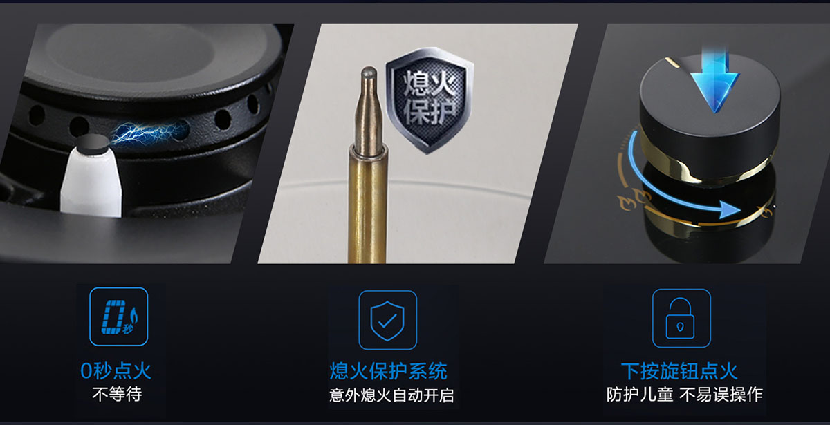 自帶童鎖按壓式點火旋鈕點火裝置,有效避免兒童意外開啟